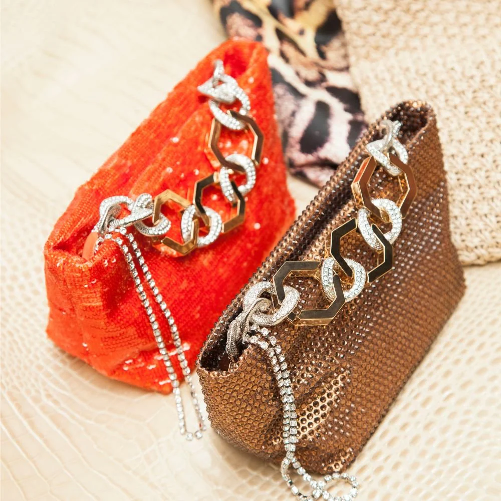 Hand-embellished with lustrous sequins, the Jessye Bag captures the joy of movement and light. Its bold tones and compact silhouette make it an effortless choice for nights out, destination weddings, or statement daywear.