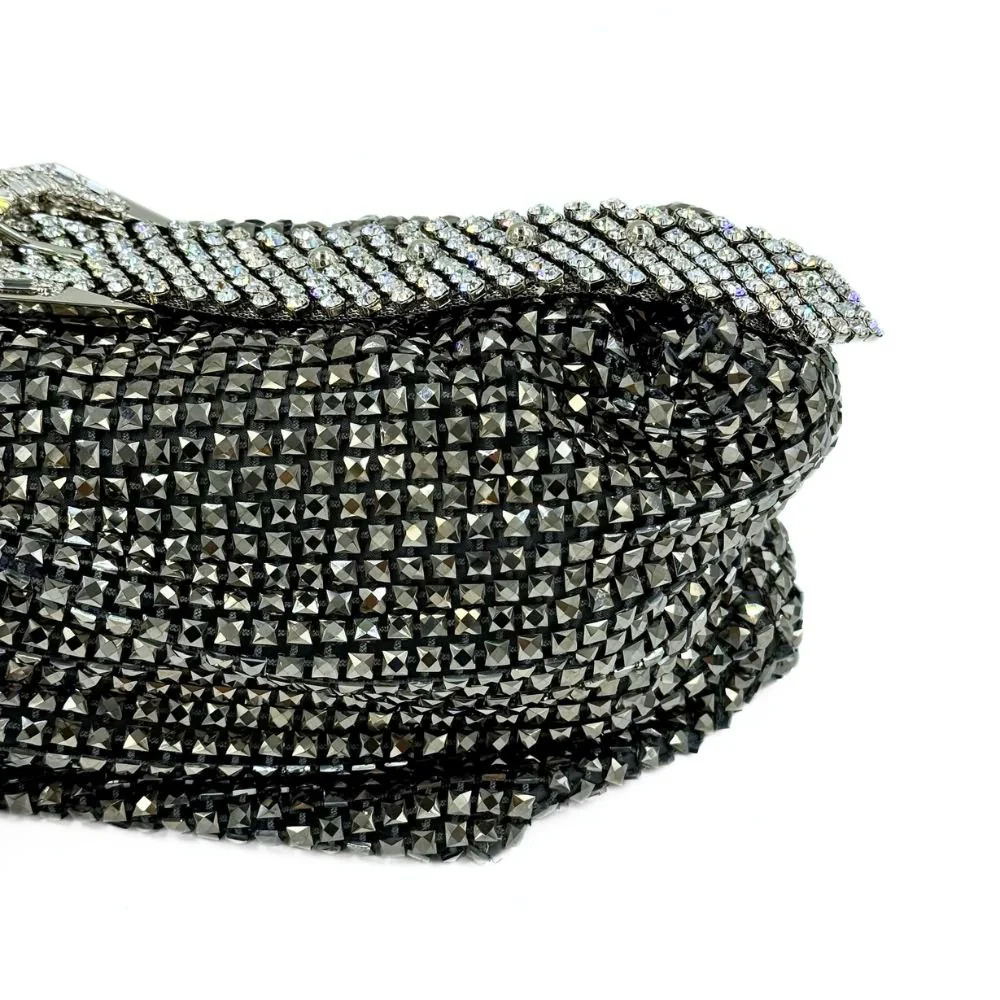 The Jill Net Bag blends Gedebe’s signature sparkle with a contemporary twist; a bejewelled net overlay surrounding a soft satin pouch. Versatile yet striking, it’s designed for modern evenings, formal dinners, or glamorous holiday escapes.